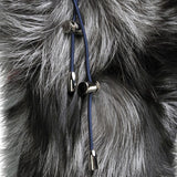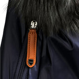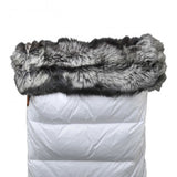 - Goose down fill with silver fox fur trim, soft nylon shell