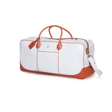 The Italian coated canvas is trimmed with vachetta leather, including a solid leather bottom with PARK crest feet. This remarkable bag has exterior and interior plaid lined zip and slide pockets, a detachable strap with a vachetta shoulder pad and a luggage tag to let others know this classy bag belongs to. Our easy access bag is complete with a padded interior divider in our signature plaid, which also folds down to make a weekender for all your luxurious getaways.. one should always look sophisticated off the court as on!