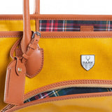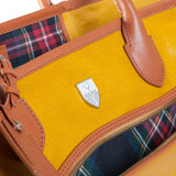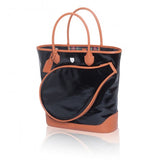 It is the attention to detail that really makes us covet this bag. Signature plaid lined racket pocket, two interior ball canister holders, exterior large exterior zip pocket crest feet, Interior zip and cell phone pocket, and vachetta leather luggage tag.